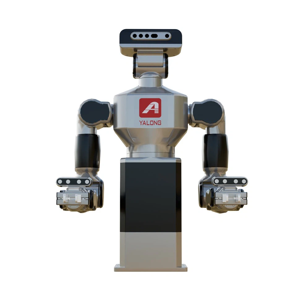 Двурукий коллаборативный робот YALONG YL-R2 состоит из операционно-исполнительных узлов, включающих два 7-степенных манипулятора (7-DOF), узел подъёма и поворота корпуса, а также захваты с контролем усилия. Он также оснащён датчиками зрения, которые могут захватывать изображения окружающей среды, обеспечивая распознавание объектов, их локализацию и отслеживание. Эти датчики предоставляют роботу зрительные возможности, подобные человеческому глазу, обеспечивая точную визуальную обратную связь при выполнении прецизионных операций и повышая интеллектуальность и адаптивность робота.