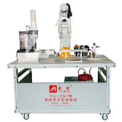 Данный робот-манипулятор для приготовления чая способен выполнять функции приготовления чая и кофе. Этот робот-манипулятор оснащён многофункциональным составным захватом, который может переносить чашку, а также выполнять различные операции, такие как взятие чашки, нажатие на кнопку (кулера или многофункционального автомата для напитков), взятие чайного пакетика, добавление сахара. Устройство использует испытательную платформу из алюминия и дерева, состоящую из учебного стола, кулера (торгового автомата), устройства для выдачи чашек, промышленного робота (с составным захватом), основания (стойки) и т.д., причём промышленный робот выполняет серию действий в процессе чайной церемонии. Оборудование построено вокруг промышленного робота, подчёркивая его применение в сфере услуг в областях коммуникации, механики и электрики, и обеспечивает всестороннее учебное удобство для изучения автоматизации.